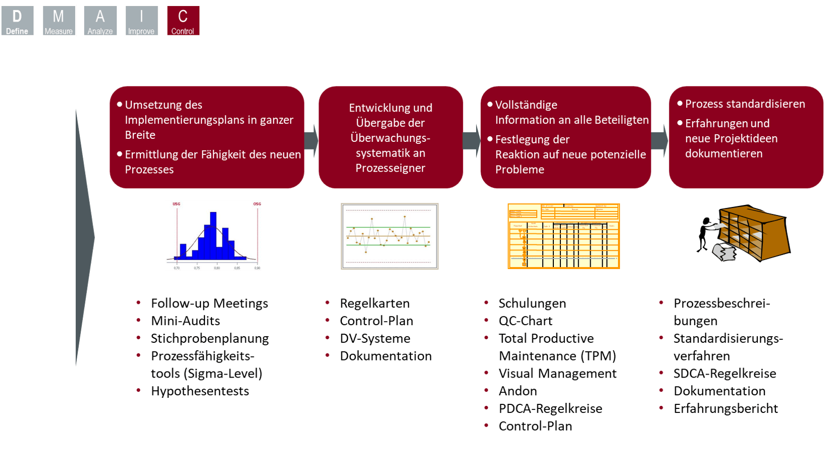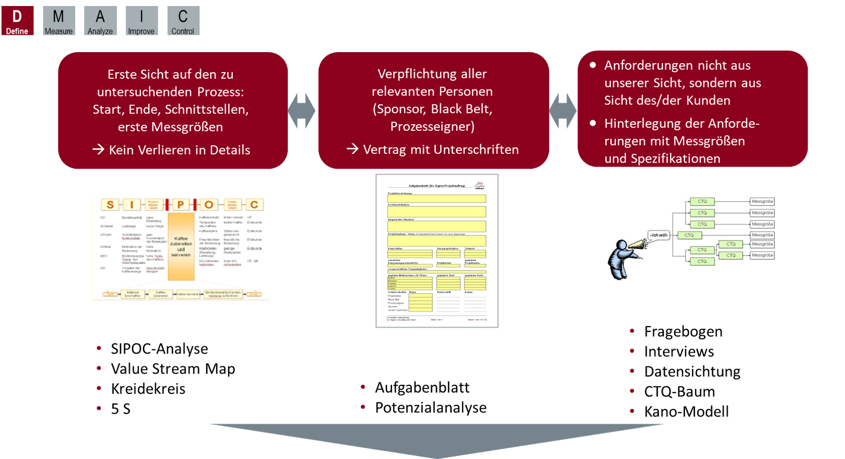 DMAIC (Define- Measure-Analyze-Improve-Control) erweitert.